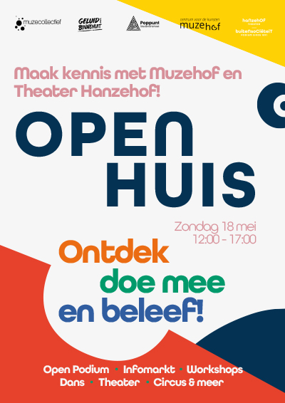 Op zondag 18 mei van 12:00 tot 17:00 uur openen Muzehof en Theater Hanzehof gezamenlijk de deuren voor het Open Huis, een bruisende middag vol muziek, theater, dans en circus. Iedereen is dan van harte welkom om zelf iets te doen en te beleven in de podiumkunst. Inmiddels is het programma bekend.